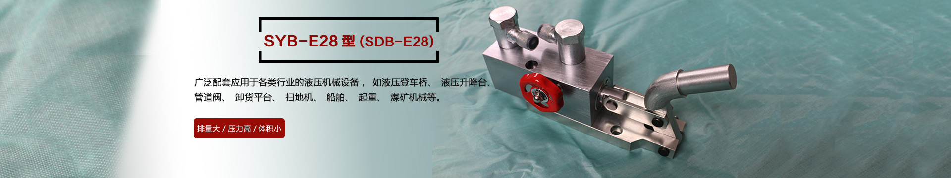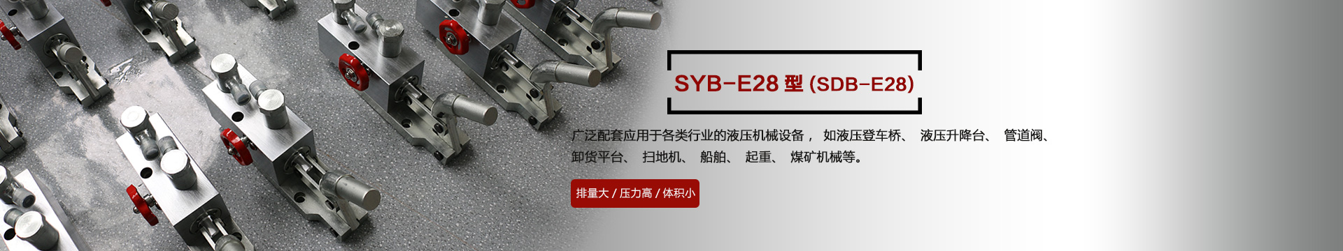 本產(chǎn)品SYB-E28型在本公司原有的SDB-E28型基礎(chǔ)上不斷改進(jìn)改良,廣泛應(yīng)用于各種行業(yè)的機(jī)械設(shè)備,如液壓登車(chē)橋、液壓升降臺(tái)、管道閥、卸貨平臺(tái)、掃地機(jī)、船舶、起重、煤礦機(jī)械等液壓機(jī)械設(shè)備上,效率高、結(jié)構(gòu)緊湊,深受客戶的歡迎...